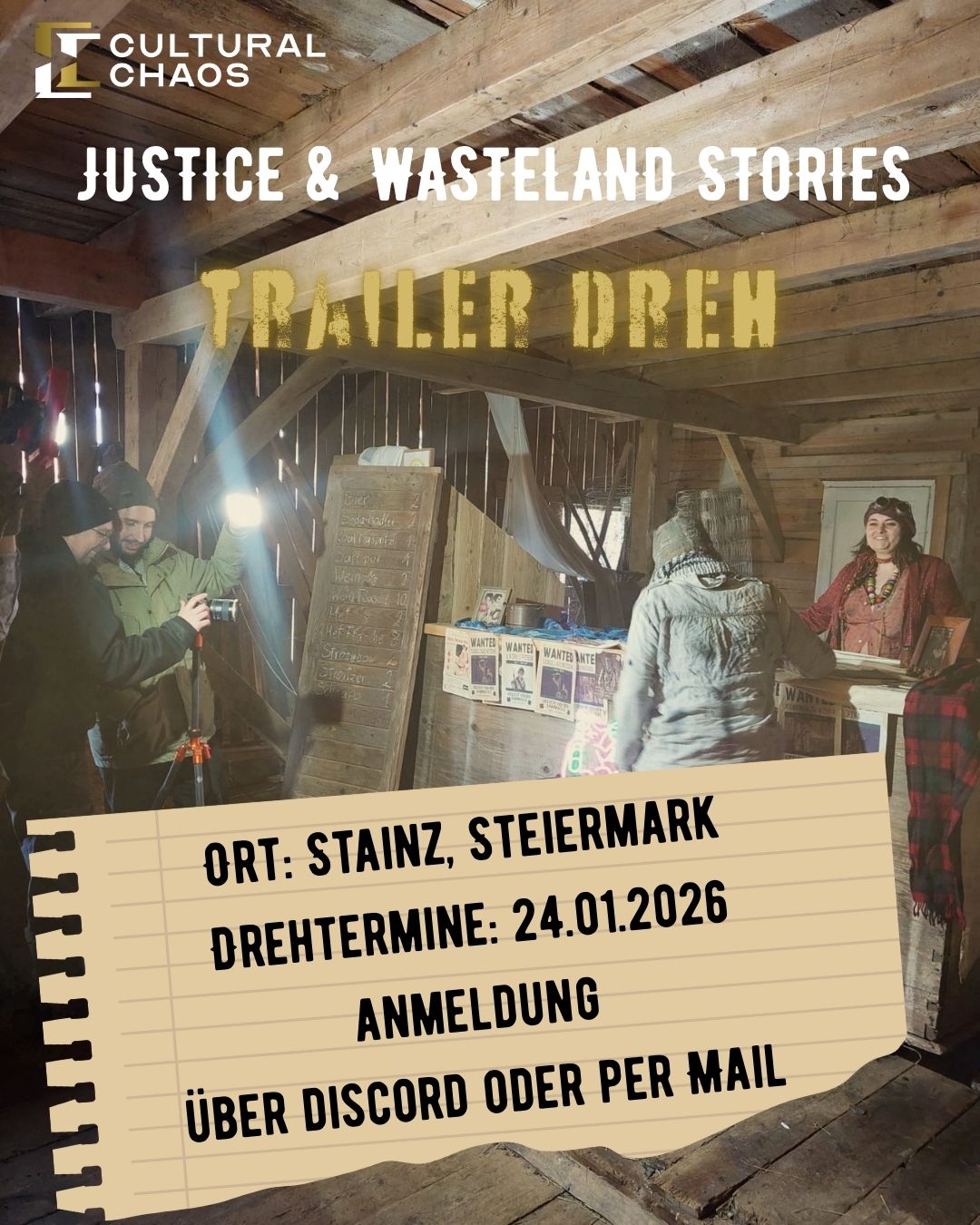 Für den Trailerdreh zu JUSTICE & WASTELAND STORIES mit unserem genialen Foto- & Videograf Förb suchen wir Darsteller:innen aus unserer Community.